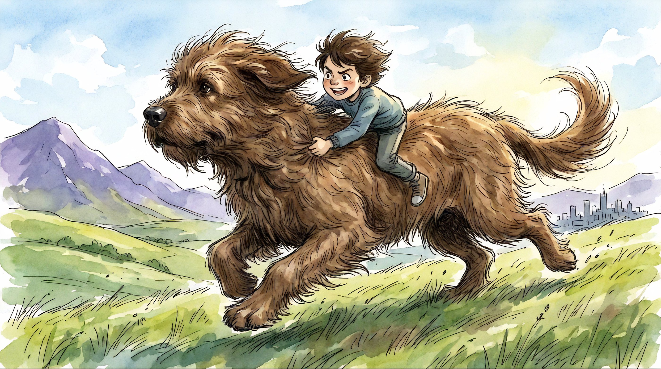 When Finn's mother falls ill, his older brothers are too frightened to help. Finn, small but determined, sets off alone to find the healing spring hidden deep in the Green Glen. At the edge of the city, he meets an enormous Brown Dog: shaggy, wild, and frightening. His knees are shaking. But he keeps going.